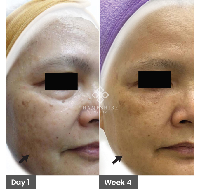 We provide laser treatment + medication to help lighten and clear pigmentation. Combining both treatments can lighten pigmentation spots to a large extent.