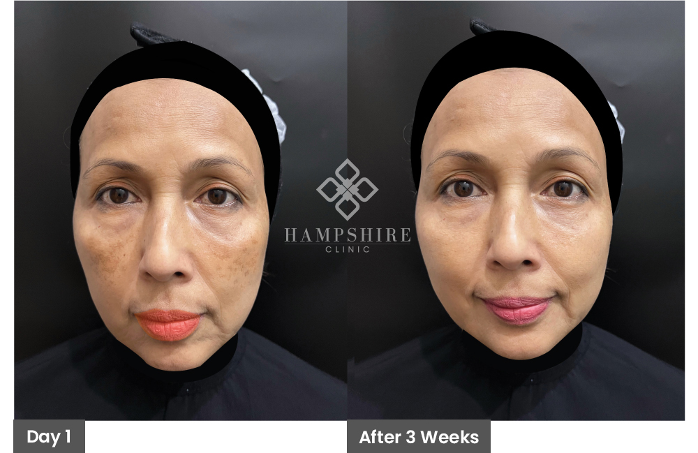 At Hampshire Clinic, we specialise in pigment problem like Melasma (also known as hormonal pigmentation or ‘mask pregnancy’) which is seen in women and men and is usually first noted between the ages of 30 – 50’s.